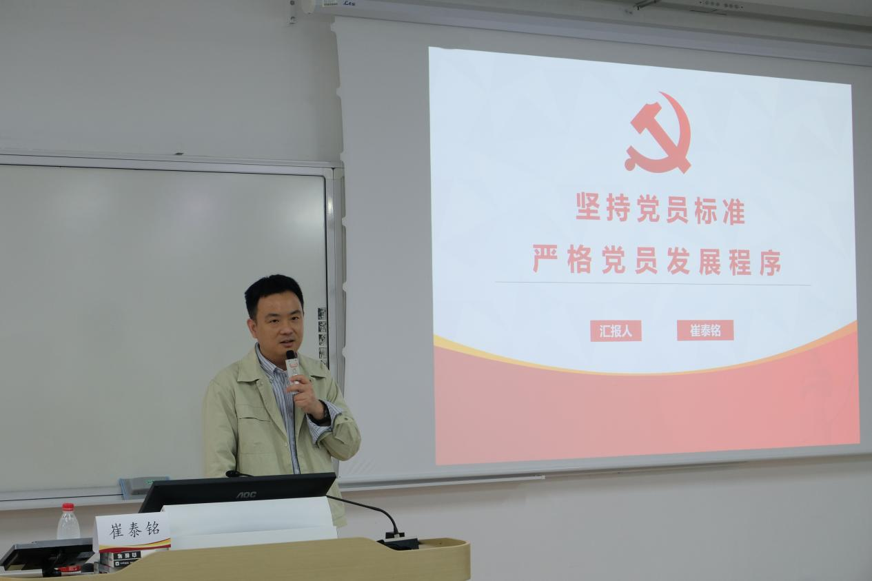 图书馆副馆长崔泰铭围绕“坚持党员标准,严格党员发展程序”这一主题,系统讲解了党员发展的规范流程和关键节点,着重强调政治标准是党员发展的第一标准,引导学员从一开始就端正入党动机,不断加强思想淬炼。